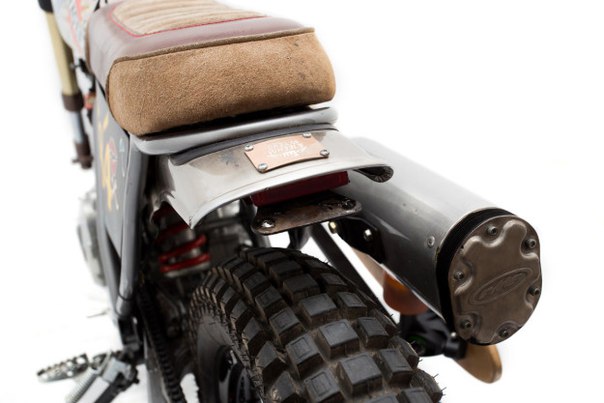 Чтобы мотоцикл был практичным, на него установили удобный руль Renthal, эндуро-фару, небольшой спидометр.